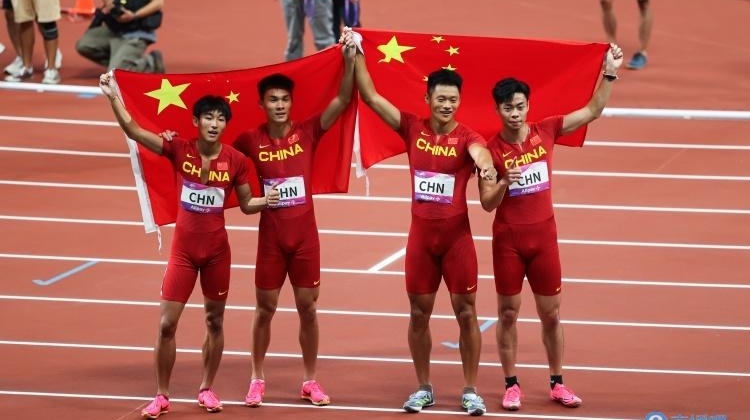 最终,中国队以38秒29的赛季最好成绩夺冠。