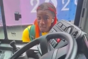 这导致两人站在大门附近,但无法通过(在截图中,理查森穿着蓝色西装,弗雷泽-普莱斯穿着黄色长袖)。结果,恼羞成怒的理查德森在教练和美国田径队工作人员的带领下,迅速绕道找到了入口,应对了危机。
