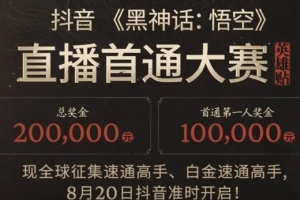 参与方式:8月17日起,抖音搜索“黑神话悟空首通大赛”了解详细细节
