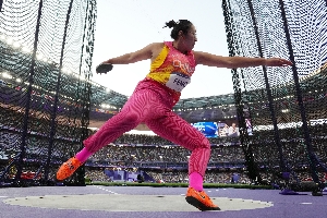 奥尔曼第四次登场,掷出了69米50的成绩,冯彬被拉开了差距。