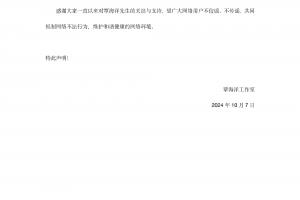感谢大家一直以来对覃海洋先生的关注与支持,望广大网络用户不信谣、不传谣,共同抵制网络不法行为,维护和谐健康的网络环境。