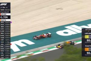 直播吧08月03日讯 F1匈牙利大奖赛正赛第29圈,维斯塔潘在四号弯动手,汉密尔顿离开赛道躲避。