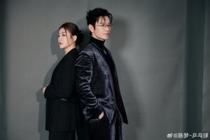 黑色系服装😎陈梦晒与黄晓明合照:酷酷的妹碰到了帅帅的哥