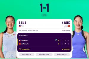 直播吧01月10日讯 WTA250奥克兰站女单半决赛,王欣瑜vs埃亚拉。