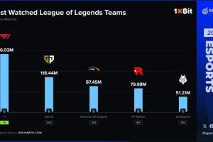 直播吧1月10日讯 今日外媒统计2025年度英雄联盟战队收视率排名(不包含大陆地区数据),具体如下: