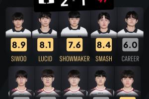 直播吧4月17日讯 在今日的LCK常规赛上,T1以1-2的比分不敌DK,赛后外网社区评分中Keria高达8.2分,而Faker的评分3.4,Doran的评分仅1.6!