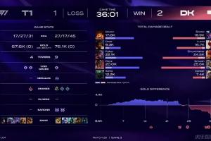 直播吧4月17日讯 在今日的LCK常规赛上,T1以1-2的比分不敌DK,第三局数据面板显示Oner皇子全局的输出比自己的辅助派克还要低!