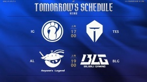 直播吧4月18日讯 明日LPL将迎来iG对阵TES、AL对阵BLG的比赛,赛前官方发布了两队的首发人员名单。
