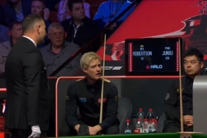 直播吧4月23日讯 斯诺克世锦赛上演罕见一幕,在尼尔·罗伯逊对阵庞俊旭的32进16轮次比赛中,尼尔·罗伯逊在第二局因算错分直接认输。