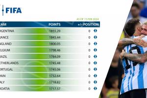 【2023年FIFA年终排名:国足仍79,亚洲第11;阿根廷、法国、英格兰前三】
