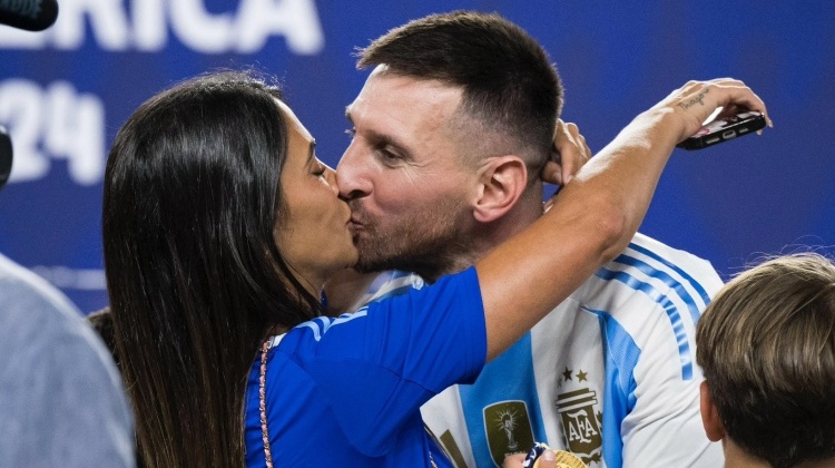 直播吧7月15日讯 美洲杯决赛,阿根廷击败哥伦比亚夺冠!赛后,梅西和妻子安东内拉相拥,亲密接吻!