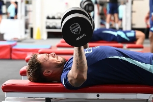 太阳报报道,本-怀特哑铃卧推40kg让众多球迷感到惊讶,相比之下,热苏斯哑铃卧推的重量为22.5kg。