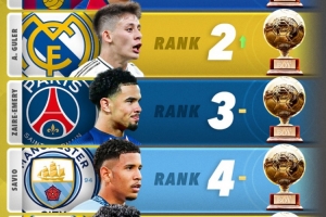 直播吧7月26日讯 英媒Score90盘点了他们自己的7月份金童奖排名,亚马尔排名第一。