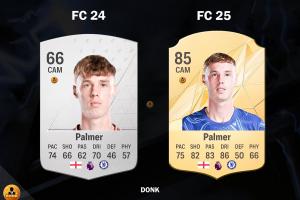 要知道,在上一作《FC24》发布之初,帕尔默只有66分的总评。短短一年内帕尔默用表现证明了自己的实力。