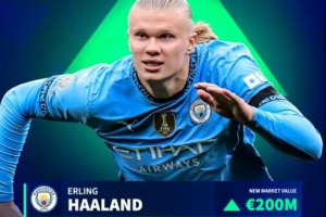 姆巴佩(目前身价1.8亿欧)曾在2018年到达2亿欧大关,哈兰德此番也追平了前者的记录。