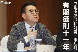 2024年12月11日上午,湖北省咸宁市中级人民法院一审公开宣判中国足球协会换届筹备组原副组长、中国足球协会原秘书长刘奕受贿一案,对被告人刘奕以受贿罪判处有期徒刑十一年,并处罚金人民币三百六十万元;对其受贿所得财物依法予以追缴,上缴国库,不足部分继续追缴。