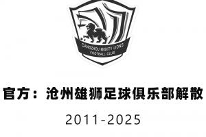2025年1月6日,中国足协公布49家俱乐部获得2025赛季职业联赛准入资格,中超俱乐部沧州雄狮足球俱乐部未在列,宣布不再继续征战中国足球职业联赛。