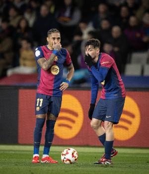 但是,巴萨在直接任意球上总是错失良机。在与马竞的国王杯中,比赛最后10分钟,巴萨获得了一个距离球门17米的任意球机会,拉菲尼亚和莱万来了一个配合,但最终无功而返,之后马竞连入两球将比分扳平。