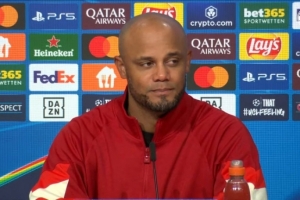 直播吧3月6日讯 欧冠1/8决赛,拜仁主场3-0完胜勒沃库森。赛后,拜仁主帅孔帕尼接受采访。