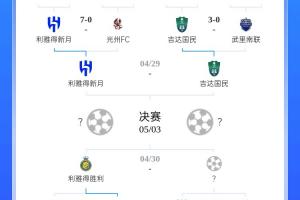 亚冠4强已确定3队,利雅得新月将对阵吉达国民,利雅得胜利将对阵明天川崎前锋和萨德的胜者。