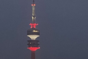 据拜仁资讯博主JUFE的报道,慕尼黑奥林匹克塔亮起红白灯光,庆祝拜仁联赛夺冠。