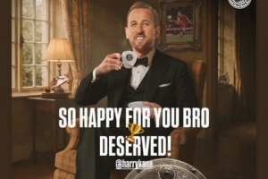 特尔社媒晒出凯恩的夺冠海报,并配文:“真为你感到高兴,兄弟!当之无愧。”