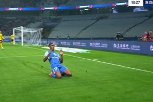 米内罗连场传射!高天意传中,米内罗头球破门,申花2-0西海岸