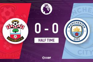 半场结束,曼城暂0-0南安普顿。