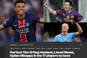 直播吧6月1日讯 欧冠决赛巴黎5-0大胜国米,夺得队史首座欧冠奖杯。19岁小将杜埃上演两射一传,赛后《队报》为杜埃打出了10分,这家法国媒体的评分向来苛刻。本世纪至今,《队报》仅给出15次10分的评价(含杜埃)。