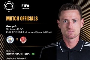直播吧6月16日讯 FIFA官方公布世俱杯(当地时间)18日各场比赛裁判安排,马宁将担任曼城vs维达德一役第四官员。
