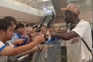 直播吧06月23日讯 据媒体人杨翼消息,申花新援、赤道几内亚国脚路易斯-恩拉沃已抵达上海,现场有许多球迷接机。恩拉沃为多名球迷送上签名并与球迷击拳打招呼。