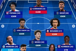 直播吧7月5日讯 《转会市场》统计了法甲U21球员最贵阵容,巴黎4将在列。