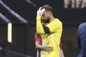 从画面上看,多纳鲁马显得有些迷茫:他走开,跪下,似乎要走向替补席,然后又皱着眉头返回。