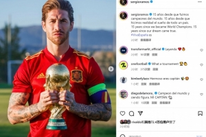 直播吧7月12日讯 拉莫斯更新社媒动态,纪念2010年随西班牙队问鼎世界杯。