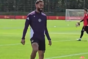曼联官推为视频配文:“这是库尼亚首次代表曼联参加训练。”