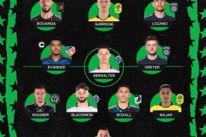 美职联全明星首发:1-斯图弗、31-安迪-纳亚尔、15-伯克萨尔、33-布莱克蒙、28-凯-瓦格纳、7-德雷尔、16-塞巴斯蒂安、19-埃万德、11-洛萨诺、98-苏里奇、99-博安加