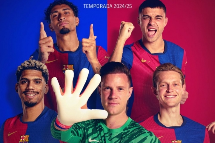 巴萨24/25赛季的一线队队长顺位为特尔施特根、阿劳霍、德容、拉菲尼亚和佩德里。
