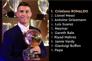 直播吧8月25日讯 金球奖官方更新社媒动态,回顾2016年的金球奖前十,C罗夺魁,梅西次席。