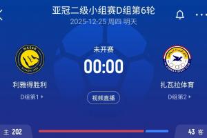直播吧12月24日讯 北京时间0点,亚冠二级联赛小组赛D组第6轮,利雅得胜利vs扎瓦拉体育,赛前双方公布了首发阵容。