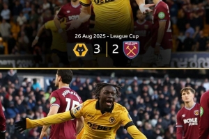 直播吧1月4日讯 在本轮英超,狼队3-0击败西汉姆。
