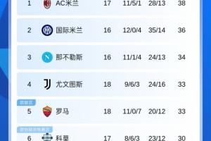 直播吧01月04日讯 意甲第18轮,罗马客场0-1不敌亚特兰大降至第5,尤文1-1莱切成功升至第4,最新积分榜如下: