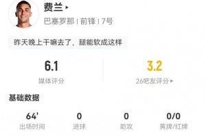 直播吧1月4日讯 巴萨在本轮西甲对阵西班牙人,费兰本场数据如下: