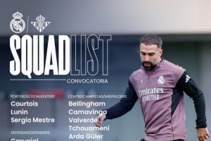 直播吧1月4日讯 北京时间1月4日23:15,西甲第18轮,皇马对阵贝蒂斯,皇马公布本场名单,卡瓦哈尔回归,姆巴佩伤缺,马斯坦托诺在列。