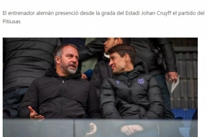 直播吧1月4日讯 西班牙《每日体育报》报道,当地时间周日,巴萨主帅弗里克趁着一线队休假的空档与巴萨体育副主管博扬一同前往约翰·克鲁伊夫球场,现场观看了西协乙巴萨竞技队(巴萨B队)4-0大胜伊比萨岛的比赛。