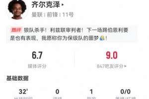 直播吧1月4日讯 曼联在本轮英超对阵利兹联,齐尔克泽本场数据如下: