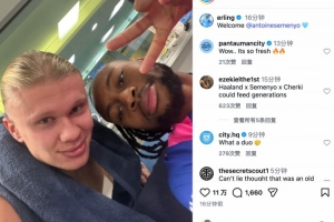 曼城新援到位!哈兰德社媒晒合照:欢迎,塞梅尼奥🩵