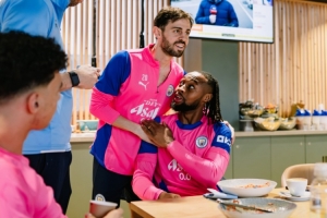 直播吧1月10日讯 曼城官方晒图,福登、B席等队友欢迎新援塞梅尼奥。