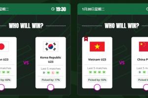 赛前U23亚洲杯的官网预测网页,投票支持越南的网友达到93%,国足仅有7%。另一场对决日本U23支持率有83%,韩国U23仅为17%。