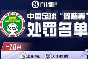 直播吧01月29日讯 中国足协正式公布了“假赌黑”专项整治行动受处罚的俱乐部名单。与此前直播吧独家透露的信息一致,津门虎、申花被罚10分,中超共9队被罚分,总计13家职业俱乐部被罚分。