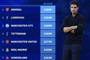 直播吧2月4日讯 “转会市场网”统计了本赛季到目前为止,转会净支出最高的十家俱乐部,英超6队在列并占据前5名(单位:欧元;部分联赛转会窗尚未关闭)。